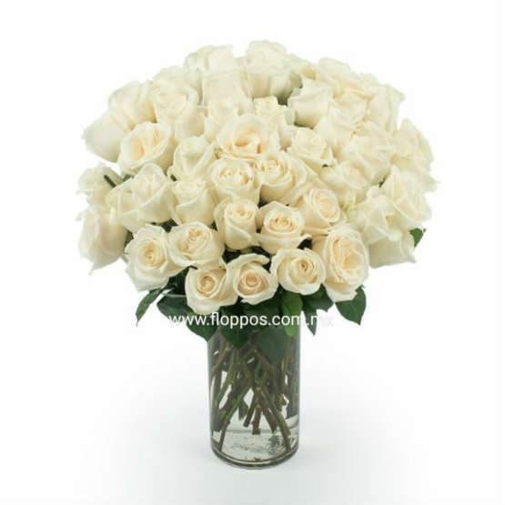 50 ROSAS BLANCAS EN JARRÓN
